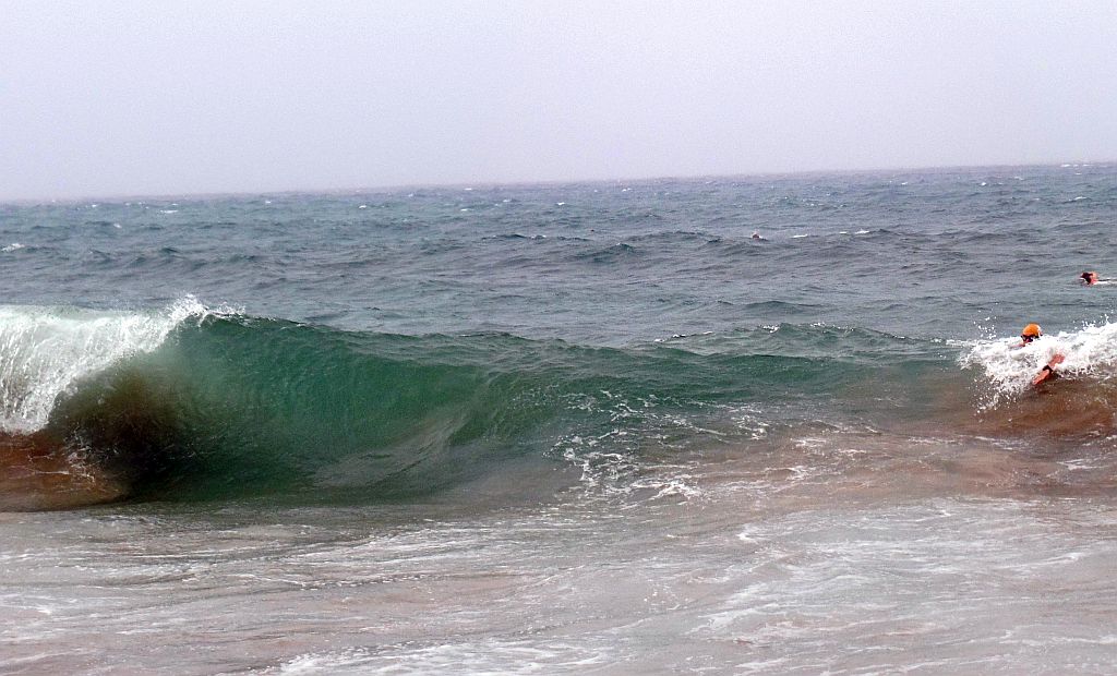 This looks super intimidating to someone who has only ever swum in reservoirs. Mostly nice, calm, smooth as glass with maybe one rough day of almost whitecaps reservoirs. I forgot all about the sharks and realized I had more imminent things to worry about. But I practiced both days, getting in, getting out, getting in, getting out, diving into the correct part of the wave, swimming all different directions in the current. I got some good mouthfuls of water and some inelegant exits onto the beach but no major problems of getting severely tossed or my hip slammed into the sand like a lady I met during the swim. I felt like I had the hang of how to dive into the wave, at least enough to get me through the race. Sorta. Kinda. I felt o.k. about it. Little did I know what race day had in store.
