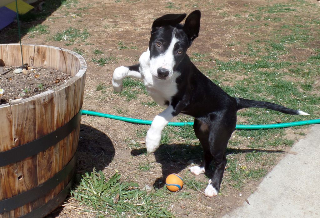 Leo, Tess' dad, was not seized with the mom and pups so did not make the journey from Seagraves, Texas up to Colorado. However he was being kept on a tether and managed to break free from it only to land in the shelter with a death sentence of this Friday (April 14) tacked to his head.
